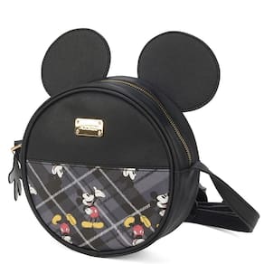 Bolsa mickey orelhas bmk78595 redonda pequena xadrez cor: preto bolsa mickey alça transversal bmk78595