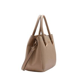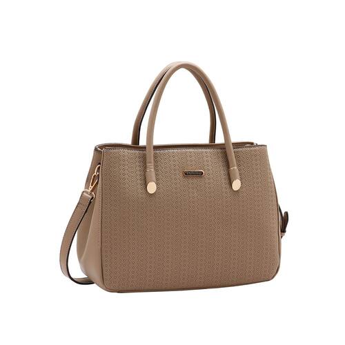 DESCRIÇÃO DO PRODUTO Modelo: Bolsa Mini Tramas Marca: Chenson Material: Poliuretano impermeável Cor: Marrom Fechamento: Zíper Formato: Bolsa tote baú estruturada