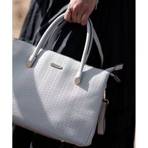 A parte frontal traz acabamento em mini tramas com efeito de cestaria fina, adicionando charme e textura sem excesso de informação.