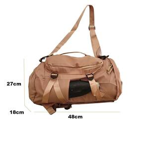 Bolsa Mochila De Viagem VE10410 Cor: salmao - Compartimentos inteligentes para separar todas as suas necessidades - Abertura principal com zíper dupo e cobertura nos zíperes - Compartimento exclusivo para armazenar tênis, roupas molhadas ou outras necessidades - Bolso frontal generoso com zíper - Bolsos laterais com cintas de fixação e presilhas de ajuste - Bolso traseiro para armanzenar as alças em caso de utilizar como transversal ou mala de mão - Alças de costas acolchoadas, ajustáveis sendo possível armazenar no bolso traseiro para opção como Mala de Mão ou Tiracolo - Alça de mão fixa e confortável - Alça transversal ajustável e removível Tamanho Aproximado em cm: AxLxP 48x27z18