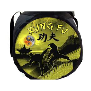 Bolsa fitness bag Kung Fu A bolsa fitness bag Kung Fu fred hard é ideal para carregar seus materiais de treino com conforto, praticidade e segurança. Com duas faixas de tecido perfurado permite a ventilação e a secagem rápida dos materiais. Possui 1 bolso lateral com zíper que facilita o carregamento de objetos pessoais, 2 alças laterais e uma central regulável e removível. Com um design bonito e temático para Kung Fu ela se torna atraente e perfeita para levar em seus treinos. Dados técnicos: - produto 100% nacional; - ou amador; - tecido de nylon e 2 faixas de tecido perfurado com costuras reforçadas; - 2 alças laterais e uma regulável e removível; - zíper trator resistente; - tamanho: comprimento 65cm, diâmetros laterais 22cm, circunferência central 88cm, altura central 25 cm, largura central 27cm. Marca: Não Informado