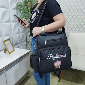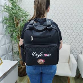 Bolsa/Mochila Personalizada para Professora Preto/Brilho Preto - Coutre Bolsas