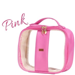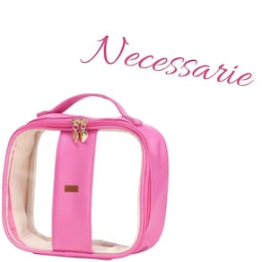 Bolsa necessaire transparente em tom rosa pink, ideal para quem procura estilo e praticidade!