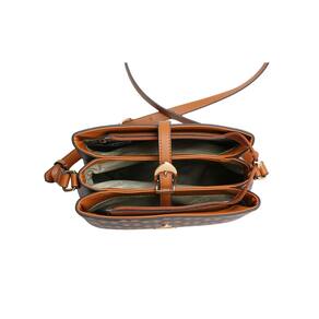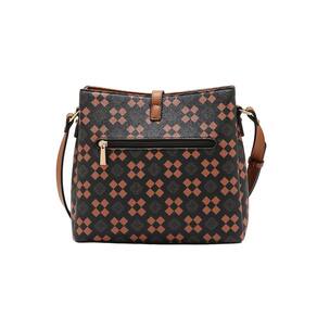 Bolsa feminina transversal com visual moderno e marcante, ideal para quem gosta de peças com personalidade e praticidade. A estampa geométrica exclusiva em tons de marrom e preto mistura quadrados e arabescos, criando um design sofisticado e elegante.