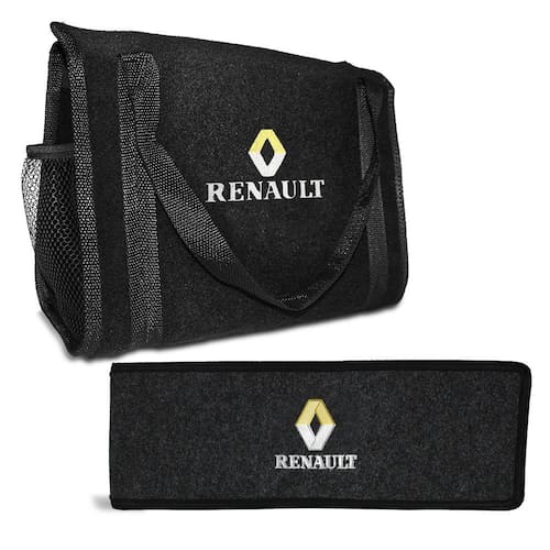 BOLSA ORGANIZADORA PORTA MALAS RENAULT + CAPA PORTA TRIÂNGULO DE SINALIZAÇÃO CARPETE PRETO AUTOMOTIVO