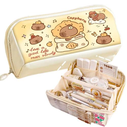 Apresenta de forma exclusiva uma charmosa estampa de capivara que traz um espírito alegre e divertido ao seu espaço de trabalho. Amplos compartimentos de várias camadas permitem a segregação e organização perfeitas de sua extensa coleção de ferramentas. Gráficos brilhantes e divertidos chamam a atenção, fazendo com que ela se destaque entre bolsas comuns e injetando diversão em seu espaço de trabalho. Com seu tamanho generoso, esta bolsa contém mais do que apenas canetas e lápis; é sua escolha para materiais de arte e pequenos itens essenciais. Inspirada pelo gentil roedor gigante da natureza, esta bolsa promove sutilmente a conscientização sobre a conservação da vida selvagem de uma forma divertida.
