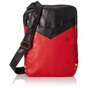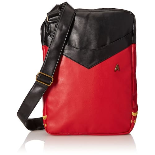 Você vai precisar de algo para guardar seu computador e outros pertences se você estiver indo viajar onde nenhum homem esteve antes! Esta bolsa carteiro Star Trek: autêntico Series Red Uniform é perfeita para guardar todas as suas necessidades e objetos de valor através do espaço. Com um rebite de metal personalizado, classificação de trança bordada no painel lateral, forro de impressão personalizada, bem como bolsos internos e suportes de caneta. Cabe até mesmo em um laptop ou tablet de até 13 polegadas no interior! Não deixe a Terra sem esta incrível bolsa para guardar todas as suas coisas... isso seria ilógico!