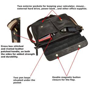 ALTO ZENAMENTO Nunca fique sem espaço com seu escritório, faculdade ou material escolar. Junto com um laptop de 14 e um tablet de 9,7 no bolso principal com zíper, você pode carregar um arquivo, caderno, garrafa de água, adaptador, banco de dados, alguns estacionários, calculadora, adaptador, óculos e etc. Possui 2 bolsos frontais sob a aba, para facilitar o acesso, um dos bolsos possui ainda 2 presilhas para caneta. Além disso, ele também possui bolsos de notas finos ou em alguns papéis soltos em trânsito.