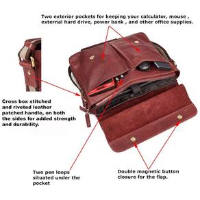 ALTO ZENAMENTO Nunca fique sem espaço com seu escritório, faculdade ou material escolar. Junto com um laptop de 14 e um tablet de 9,7 no bolso principal com zíper, você pode carregar um arquivo, caderno, garrafa de água, adaptador, banco de dados, alguns estacionários, calculadora, adaptador, óculos e etc. Possui 2 bolsos frontais sob a aba, para facilitar o acesso, um dos bolsos possui ainda 2 presilhas para caneta. Além disso, ele também possui bolsos de notas finos ou em alguns papéis soltos em trânsito.