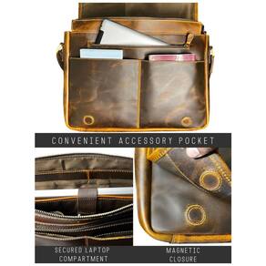 DIMENSÕES 15 x 11 x 4 polegadas de espaço, 38 x 27 x Há para seus Macbooks, Chromebooks e laptops favoritos de até 15 polegadas, . COURO DE BÚFALO ROBUSTO REAL 100 , mas não PU ou falso à mão Escorda com óleo e desgastada, esta bolsa melhora com o tempo e cheira muito bem TERNOS PARA EMPRESAS OU CASUAIS tem aquele estilo de couro urbano difícil de conseguir enquanto é moderno e moderno com cincolas e acessórios de latão, forro e costuras resistentes e zíperes YKK AJUSTES PARA O CONFORTO para viagens longas, a alça de esta bolsa de couro para laptop está totalmente segura há também uma cinta de segurança com fecho aderente para manter as coisas seguras em qualquer lugar ACESSO RÁPIDO SUAS COISA Bolsa de couro com zíper e organizado 1 de segurança, 2 bolsos internos com protetor e 2 externos facilmente com zíper ideal para laptops e tablets pequenos Marca: Não Informado