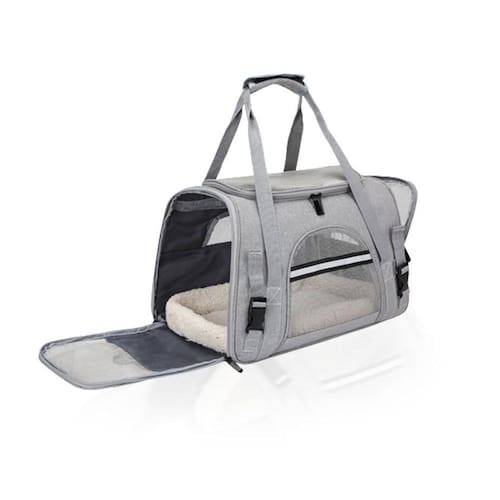 Produto em estoque A bolsa de transporte pet é o produto ideal para você que gosta de levar seu animalzinho para todos os lugares ao seu lado. Tendo seu uso permitido em aviões e demais meios de transporte. A bolsa é confortável, macia e ventilada, sendo perfeita para viagens de qualquer tipo de duração, além de servir como casinha durante o período. Por que usar a bolsa de viagem pet A bolsa de viagem é fácil de carregar, tem uma pegada confortável e acolchoada possui também alguns modos de se segurar por ter além da alça fixa, uma removível, ou seja, seu animalzinho e você irão viajar no conforto. A bolsa é impermeável e fácil de limpar. Por ser feita com nylon oxford e poliéster taffeta a bolsa de viagem tem uma resistência e durabilidade sem igual. A bolsa acompanha um tapete macio para o conforto do seu pet e laterais com malhas respiráveis que tornam a mochila ainda mais arejada e adequada para viagens. Características da mochila: A mochila possui abertura para as duas laterais, facilitando a saída do pet. Possui uma alça que se encaixa nos suportes de puxar as malas com rodinha. Possui fivelas para encaixe em cintos de segurança. Possui uma abertura para contato com o pet dentro da bolsa. Alças que refletem luz para facilitar visualização. Bolsa 100% dobrável para ocupar pouco espaço quando não utilizada. Especificações técnicas: Medidas: 28cm altura x 25cm largura x 43cm comprimento. Material: nylon oxford e poliéster taffeta Peso máximo suportado: 8kg. Peso aproximado da bolsa: 1kg. Além de trabalharmos com diversos marketplaces reconhecidos mundialmente, dispomos no nosso website os mais reconhecidos certificados de segurança, garantindo 100% sua compra. Ficaremos muito felizes em contar com a sua avaliação ao final da compra, para continuarmos evoluindo e proporcionando a melhor experiência possível para todos os nossos clientes Estamos sempre à disposição, obrigado pela sua visita