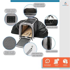 - Bolsa expansível para que seu pet tenha mais espaço; - Confeccionada nas especificações para embarque na cabine de aviões da maioria das companhias aéreas; - Acomoda confortavelmente pets de até 14kg; - Aberturas frontal e lateral que facilitam a entrada e saída do pet; - Fundo interno rígido removível, fácil de higienizar; - Alta qualidade de fabricação e detalhe; - Super arejada, confeccionada com tela de alta resistência nas laterais e topo; - Totalmente dobrável e fácil de guardar.