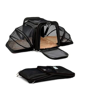 Dimensões da Bolsa: 44,5cm X 25,4cm X 25,4cm, Expansível até 73,66cm. Dimensões do Tapete: 43,18 cm X 24,13cm Características do Produto: - Confeccionada nas especificações para embarque na cabine de aviões da maioria das companhias aeras. - Acomoda confortavelmente pets de até 14 kg; - Aberturas frontal e lateral que facilitam a entrada e saída do Pet; - Fundo interno rígido removível, fácil de higienizar; - Alta qualidade de fabricação e detalhe; - Super arejada, confeccionada com tela de alta resistência nas laterais e topo; - Totalmente dobrável e fácil de guardar.