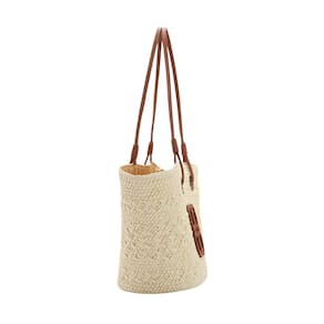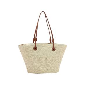Bolsa de Praia Luxo Feminina Palha Ombro Chenson Poliuretano Fechamento com zíper Forro em tecido personalizado Compartimento para pequenos objetos Amplo espaço Logo Chenson em Madeira Alça poliuretano Acabamento em costura contrastante