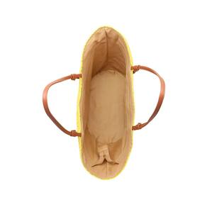 Bolsa de Praia Luxo Feminina Palha Ombro Chenson Poliuretano Fechamento com zíper Forro em tecido personalizado Compartimento para pequenos objetos Amplo espaço Logo Chenson em Madeira Alça poliuretano Acabamento em costura contrastante