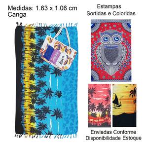 Canga: Cores e estampas temáticas, formando um kit cheio de beleza. Franja nas duas pontas. Tamanho aproximado: 160 cm de comprimento x 102 cm de largura. Tecido 100% Poliéster.