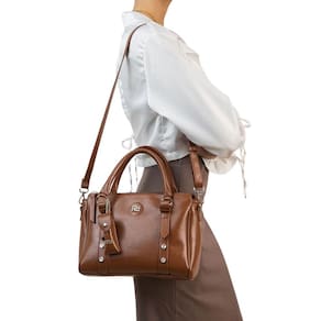 Com design sofisticado e detalhes modernos, essa bolsa é perfeita para quem busca praticidade sem abrir mão da elegância. Confeccionada em material sintético de alta qualidade, seu espaço interno generoso permite uma organização eficiente do dia a dia, com porta batom e bolso interno com zíper para manter tudo no lugar. Possui alça tiracolo opcional e alça de mão fixa, oferecendo versatilidade no uso, e detalhes em tachas que adicionam um toque de estilo único. Confeccionada na cor caramelo, combina facilmente com diversos looks e ocasiões. Com medidas de 27,5 cm de largura, 20 cm de altura e 11 cm de profundidade, ela é espaçosa e funcional. O fechamento superior com zíper garante segurança e praticidade no dia a dia. Um acessório indispensável para quem valoriza charme e organização em cada detalhe.