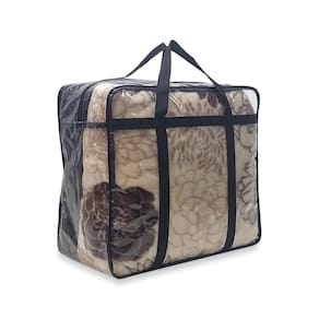 -feito de material plastico transparente e alças longas em poliester que começam no fundo da bolsa para tenha mais resistência no transporte. -fácil manutenção pode ser lavado e higienizado para uso. -medidas: 50 cm largura x 43 cm altura x 23 cm profundidade lateral - Tamanho MEDIA na foto utilizamos 1 cobertor de casal + 1 cobertores microfibra
