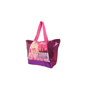 Bolsa Sestini Barbie A Princesa e a Popstar Confeccionada em material têxtil Possui recortes laterais com tratamento de brilho Estampa frontal estilizada, detalhe em roxo, aplicação de glitter e hotfix Alça dupla de ombro Fechamento em zíper Puxador em formato de estrela Interior em material têxtil com um bolso de fechamento em zíper e um pequeno compartimento Medidas:33 cm de altura x 53 cm de largura x 14 cm de profundidade.