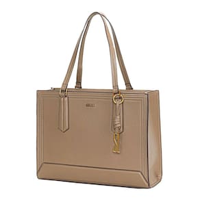 Bolsa de formato quadrado e adornada com um elegante chaveiro dourado com o logo da marca, apresenta uma alça de ombro e um compartimento espaçoso com bolsos internos. Seu design proporciona espaço para acomodar todos os itens essenciais, tornando-a uma escolha versátil para diversas ocasiões. Combinando estilo e praticidade, essa bolsa é uma opção elegante para quem busca um acessório amplo e funcional.