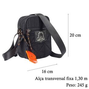 Bolsa Shoulder Bag Garfield Nylon crinkle e matelasse Preto