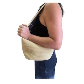 Contém: 1 unidade Bolsa Feminina de Praia Transversal Sintética bege Cor: bege escuro Sexo: Unissex Material: Tecido sintético Tamanho aproximado bolsa: 30cm x 20cm x 11cm Tamanho alça: 60cm Material alça: material sintético A bolsa é com fecho de zíper, toda forrada internamente e super espaçosa, ideal para praia, piscina, compras ou para simplesmente dar um charme no seu visual de verão.