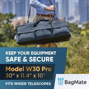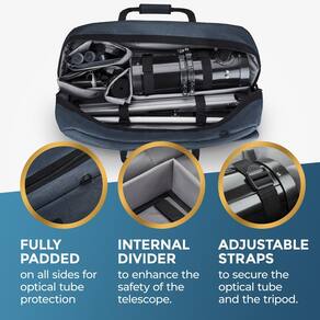 bagmate Bolsa para telescópio multiuso – Estojo de transporte para telescópio absorvente de choque com alça de ombro ajustável e armazenamento extra – repelente de água (76 cm) - compatível com - Alça de ombro ajustável: o estojo de transporte possui uma alça de ombro removível e alça de mão de fecho aderente para facilitar a portabilidade. - Tecido repelente de água: feito de tecido de poliéster repelente de água para manter seu telescópio protegido da chuva e outras condições climáticas. - Armazenamento durável: construído com materiais de nível militar, incluindo espuma absorvente de choque, para evitar danos ao seu telescópio. - Proteção completa do equipamento: vem com divisórias de fecho aderente para organizar todos os seus equipamentos e bolsas de acessórios para manter seus aparelhos favoritos à mão. - Fecho de zíper: possui um fecho de zíper para fácil acesso e armazenamento seguro.
