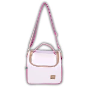 Bolsa Térmica Bebe Papinha Lanches Miellu Cor: Pink e Branco Bolsa Nécessaire Térmica Miellu temos Personalizada como no video, neste anuncio não esta incluso Bolsa nécessaire térmica desenvolvida especialmente para transporte de alimentos para seu bebê, com segurança e higiene. Em tamanho compacto, ideal para pote com refeição e acompanhamentos. EXTERIOR - Fabricada em material sintético material sintético material resistente e que não descasca e que pode ser facilmente limpo com pano úmido; - Alças reforçadas para aguentar o peso; - Design diferenciado e compacto para trazer comodidade na utilização; - Acompanham alça de mão e alça de ombro removível. - Ferragens em dourado INTERIOR - Forrada em material branco liso, de fácil limpeza e resistente a água; DIMENSÕES - Altura: 17cm - Largura: 21,5cm - Profundidade: 18cm