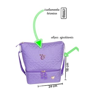 Além disso, essa lancheira térmica possui costura reforçada, garantindo maior durabilidade e resistência. Seus puxadores personalizados facilitam o manuseio e dão um toque especial ao produto. Com um design moderno e feminino, na cor lilás, essa bolsa térmica é perfeita para as fãs da Capricho.