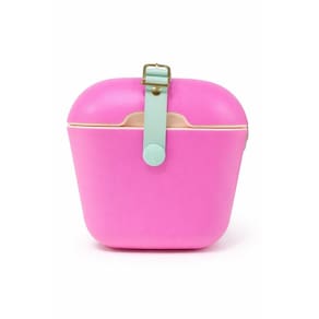 Bolsa Térmica Cooler Retrô Com Alça Em Couro 12 Litros - Rosa Chiclete Alça Verde