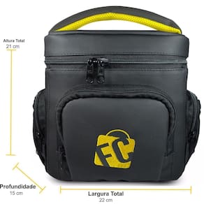 Bolsos laterais com zíper, ideal para carregar barras de cereais e objetos pessoais. Bolso frontal com zíper, ideal para colocar talheres e até meso kit higiene. Para facilitar o transporte, a lancheira possui uma alça de ombro que pode ser regulada conforme a necessidade e características do cliente. Alça de mão acolchoada.