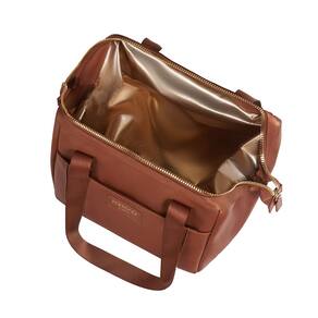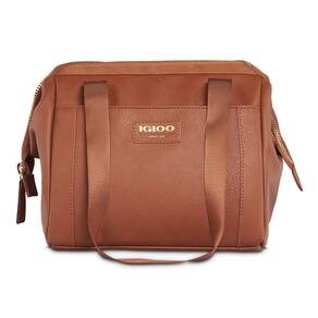 Igloo Cognac Premium 9-Can Luxe Lunch Tote Cooler Bag - Projetada com um exterior de couro sintético vegano elegante e macio e forro isolado metálico dourado - O isolamento avançado MaxCold+ mantém alimentos e bebidas frios por mais tempo do que nosso isolamento MaxCold padrão - Compartimento principal espaçoso cabe facilmente em recipientes de preparação de refeições (não incluídos) para facilitar a embalagem do almoço - Fácil de transportar com as mãos livres com tiras duplas que se ajustam ao seu ombro - O forro isolado é à prova de vazamento e fácil de limpar