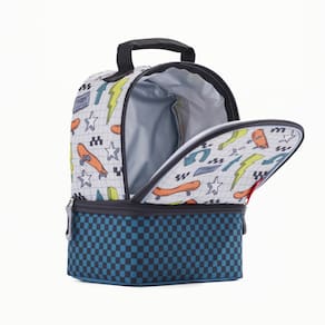 Isolamento térmico eficiente: mantém os alimentos frescos por mais tempo.Proteção antimicrobiana: evita odores e o acúmulo de bactérias.Segurança: materiais livres de PVC, ideais para crianças.Design prático: dois compartimentos para melhor organização.Conforto: alça acolchoada para transporte fácil e confortável.Durabilidade: resistente para uso diário, substituindo embalagens descartáveis.Estampa exclusiva: divertida e moderna, ideal para crianças.