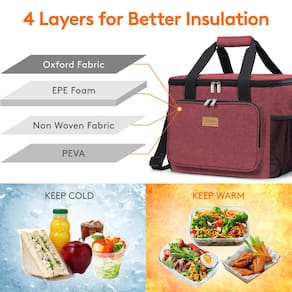 - Isolamento térmico: a lancheira é feita de material isolado que pode manter alimentos e bebidas frescos ou quentes por mais de 5 horas. Além disso, o forro interno é feito de folha PEVA de grau alimentício para que você possa colocar sua comida na bolsa diretamente sem qualquer preocupação. A espuma EPE embutida de 6 mm oferece ótima proteção para seus recipientes, alimentos e bebidas.