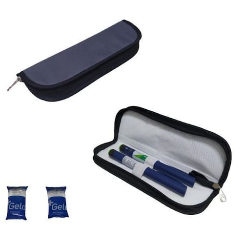 Estojo na cor cinza, caso queira outra cor/ estampa, entrar em contato ou selecionar dentro dos outros anuncios.Acompanham 2 gelinhos de gel 15 gramas cada , que utilizados no estojo aumentam o tempo de conservação da sua insulina.Estojo térmico com 4 camadas:1 estampa/ cor escolhida;2 manta pack é o produto mais indicado para controle de temperatura 3 manta aluminizada redução de temperatura aproximadamente de 6c a 8c 100% impermeável4 nilón onde é fixado os elásticos e os bolsos, produto que tem a função de estruturação da peça, além de permitir a limpeza Observação: itens usados nas fotos internas dos estojos, não acompanha o produto são meramente ilustrativos.Dimensões do estojo:Exterior:Comprimento: 23cmLargura: 8cmProfundidade: 3cmInterior:Tamanho dos bolsos:2 bolsos de:Comprimento: 11cmLargura: 6 cm obs: medidas podem ter pequenas variações por se tratar de um produto confeccionado Marca: Fada Do Retalho