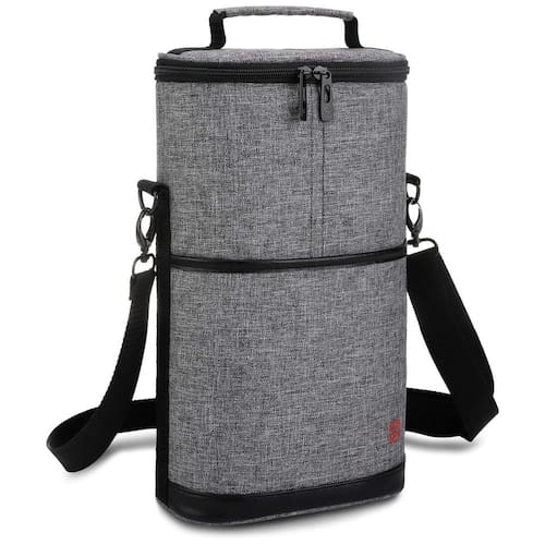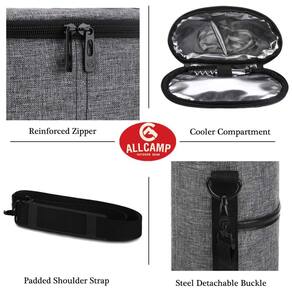 Tecido Premium O transportador de bolsa de vinho isolado para 2 garrafas da ALLCAMP apresenta poliéster 600D de alta qualidade e materiais isolados de alumínio para garantir durabilidade máxima e estrutura robusta. Dimensões 20 x 12 x . Leve e portátil em comparação com a pesada caixa de presente para vinho, a bolsa de viagem para vinho ALLCAMP é muito leve e adequada para a maioria das garrafas de vinho padrão de 750 ML. Ele vem com um abridor de garrafas de vinho para ter sempre à mão. Desfrute da sua bebida a qualquer hora Design clássico e versátil oferece a melhor maneira de transportar um pouco de vinho com você aonde quer que você vá. A bolsa de viagem ALLCAMP 2 Bottle para vinho tem uma alça de ombro ajustável e removível, juntamente com alças de mão acolchoadas para diferentes formas de transporte. Também pode ser para zenar outras bebidas quando necessário. Proteção e isolamento térmico Forro acolchoado espesso com material isolado termicamente para ajudar a zenar seu vinho da luz e evitar oscilações de temperatura causadas por condições climáticas externas. Collapsibale interno e divisor acolchoado para proteger as garrafas de vinho da colisão durante o transporte. Bolso externo para zenar pertences adicionais Marca: Não Informado