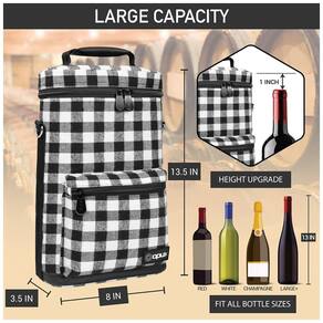 Ideal para viagens e perfeita para levar a restaurantes, parques ao ar livre, praia, jantares, concertos ou festas, esta bolsa refrigeradora de vinho é ideal para qualquer transporte de vinho. Este versátil bolsa refrigerador de vinho é um grande presente para os amantes do vinho e anfitriãs presentes. PROTEÇÃO E CONTROLE DE TEMPERATURA DA GARRAFA DE VINHO Forro acolchoado para proteger as garrafas de quebrar durante a viagem enquanto seu material de isolamento térmico mantém a temperatura do seu vinho estável, seja ele refrigerado ou em temperatura ambiente DESIGN CONVENIENTE E INTELIGENTE Apresenta uma alça de ombro ajustável, uma aba superior em couro PU vegano com gancho e presilha e zíper para segurança. O interior inclui uma aba , divisória ativa para garantir que suas garrafas de vinho cabem independentemente do tamanho e oferece proteção acolchoada. ESTILISTA E DURÁVEL Fabricado em poliéster 600D de alta qualidade para garantir a máxima durabilidade e aba e parte inferior em couro PU para um toque de elegância. Esta bolsa de transporte de garrafas é clássica, mas elegante. Faz um grande presente de aniversário ou presente do dia dos pais. Saco de vinho em couro OPUX PU mede 20 x 7 x C x L x A. Se encaixa a maioria das garrafas de vinho de 750ML padrão. Altura máxima da garrafa
