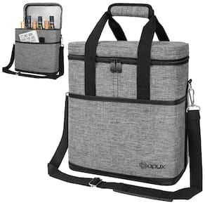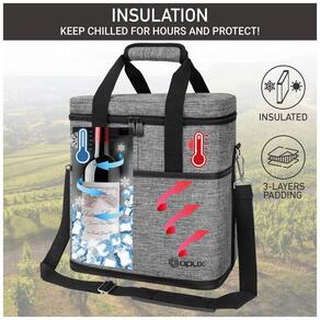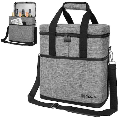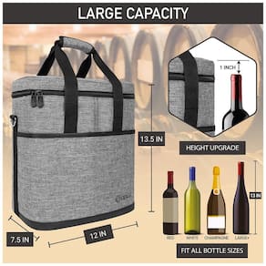 BOLSA DE VIAGEM PORTÁTIL DE VINHO Leve suas garrafas de vinho favoritas com você para um restaurante, ao ar livre, parque, praia, jantar ou festa. Também faz um grande presente para amantes de vinho e anfitriã. PROTEÇÃO E CONTROLE DE TEMPERATURA DA GARRAFA DE VINHO Forro acolchoado para proteger as garrafas de quebrar durante a viagem, enquanto seu material de isolamento térmico mantém a temperatura do seu vinho estável se ele estiver frio ou em temperatura ambiente DESIGN CONVENIENTE E INTELIGENTE Apresenta uma alça de ombro ajustável e removível junto com alças de mão acolchoadas para diferentes estilos de transporte. A aba versátil interior garante que suas garrafas de vinho cabem independentemente do tamanho e oferece proteção divisória acolchoada. Bonito e durável Feito de poliéster 600D de alta qualidade para garantir durabilidade máxima e acabamento em couro PU para um toque de elegância. Esta bolsa de vinho é clássica, mas elegante. Faz um presente de aniversário perfeito ou um presente de dia dos pais. Esta sacola de vinho com 6 garrafas com isolamento premium da OPUX mede 30 x 17 x . Se encaixa a maioria das garrafas de vinho de 750ML padrão