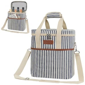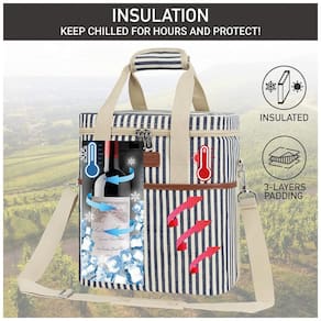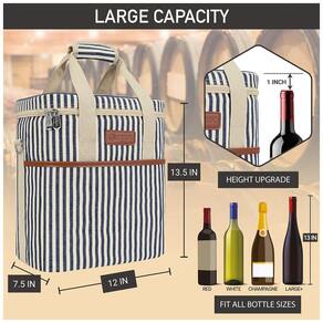 SACO DE VIAGEM PORTÁTIL PARA VINHO Leve suas garrafas de vinho favoritas com você para um restaurante, ao ar livre, parque, praia, jantar ou festa. Também é um ótimo presente para amantes de vinho e anfitriãs presentes. PROTEÇÃO DA GARRAFA DE VINHO E CONTROLE DE TEMPERATURA Forro acolchoado à prova de vazamentos para evitar que as garrafas quebrem durante a viagem, enquanto seu material de isolamento térmico mantém a temperatura do seu vinho estável se estiver refrigerado ou em temperatura ambiente DESIGN CONVENIENTE E INTELIGENTE Apresenta uma alça de ombro ajustável e destacável junto com alças de mão acolchoadas para diferentes estilos de transporte. A aba interior versátil garante que suas garrafas de vinho caibam independentemente do tamanho e oferece proteção acolchoada na divisória. Bonito e durável Feito de poliéster 600D de alta qualidade para garantir máxima durabilidade e acabamento em couro PU para um toque de elegância. Esta bolsa de vinho é clássica e elegante. É um presente de vinho perfeito, presente de aniversário ou presente de dia dos pais