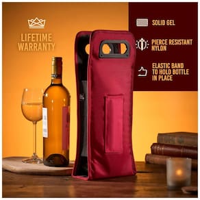 Mantém as garrafas frias Ao contrário dos pacotes de gelo ou sacos de vinho de neoprene, o gel sólido em nossa bolsa de transporte de vinho congela rapidamente e mantém suas garrafas de vinho frias por horas. Fácil de usar uma obrigação para seus acessórios de vinho. Ao contrário dos baldes de gelo ou bolsas térmicas, nosso porta vinho não requer gelo. Coloque nossa bolsa de vinho no freezer por algumas horas. Quando estiver pronto para ir, tire o do freezer e coloque sua garrafa de vinho ou garrafa de champanhe dentro. Nossa bolsa de transporte cabe na maioria das garrafas de tamanho. Design de qualidade Nossos sacos de refrigeradores de vinho congeláveis são feitos de nylon resistente a perfurações de alta qualidade. Os lados elásticos permitem que nossa manga de vinho se encaixe na maioria dos tamanhos de garrafa. Presente perfeito para entusiastas do vinho Nossa bolsa de vinho congelável é o presente de vinho perfeito para mulheres ou homens em qualquer ocasião