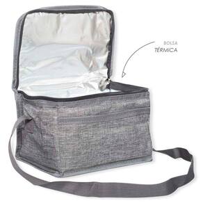 Porta Marmita Bolsa Térmica Cinza Bolsa térmica ideal para manter seus alimentos e bebidas na temperatura correta de conservação. Com manta de alumínio na parte interna, auxilia na retenção de temperatura e conservação do conteúdo. Tem capacidade de 4 litros, muito espaçosa, cabe marmitinhas fit, lanches e até bebidas, use no dia a dia para levar ao trabalho ou academia, além de ser ótima para levar em viagens longas. Tem uma alça para auxiliar no transporte e quando vazia fica bem compacta. ESPECIFICAÇÕES: Material: 50% Poliéster 30% Espuma e 20% Alumínio Peso: 135g (aprox.) Dimensões: 23,5cm largura x 14,5cm altura x 14,5cm profundidade Linha Viagem Com Alça Térmica Cor: Cinza CONTÉM: 01 Bolsa Térmica Porta Marmitas Cinza