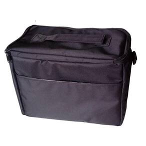 Possui uma alça para transporte, bolso na parte da frente, rede interna na parte da tampa e divisoria na parte interna.