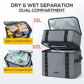 TOURIT Só provará com ação que os produtos TOURIT apenas melhoram sua experiência ao ar livre. - Grande capacidade: as bolsas térmicas podem conter um volume de 47 litros. Você pode levar 69 latas (355 ml) da sua bebida favorita - Tempo de resfriamento de longo prazo: o compartimento principal usa materiais isolantes de alta densidade e materiais à prova d'água para trabalhar juntos para garantir que os alimentos ou bebidas permaneçam frescos por até 12 horas! Mantém seus alimentos e bebidas frescos por mais tempo - 100% à prova de vazamento: o forro interno é feito de material impermeável de alta frequência PEVA, que é de alta densidade e à prova d'água. Fácil de limpar. O exterior é feito de tecido Oxford de alta densidade e tecido xadrez, que é firme e resistente ao desgaste, não é fácil de rasgar - Vários transportes: projetado com uma alça acolchoada e uma alça de ombro removível, oferece várias formas de transporte, livre para escolher para carregar à mão ou com uma alça de ombro. Equipado com um bolso frontal e dois bolsos de malha para facilitar o armazenamento dos itens. Com um abridor de garrafas, permitindo que você desfrute de uma bebida fresca em qualquer lugar - Bolsa térmica dobrável e versátil: uma corda elástica na parte superior da capa, que pode colocar toalhas e outras necessidades diárias ou você pode usá-la para dobrar a bolsa facilmente para economizar espaço quando não estiver em uso. Grande capacidade com isolamento por mais tempo, e também pode ser enchida com vários lanches e almoços. É uma companhia ideal para você viajar ou ir trabalhar