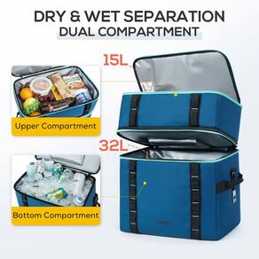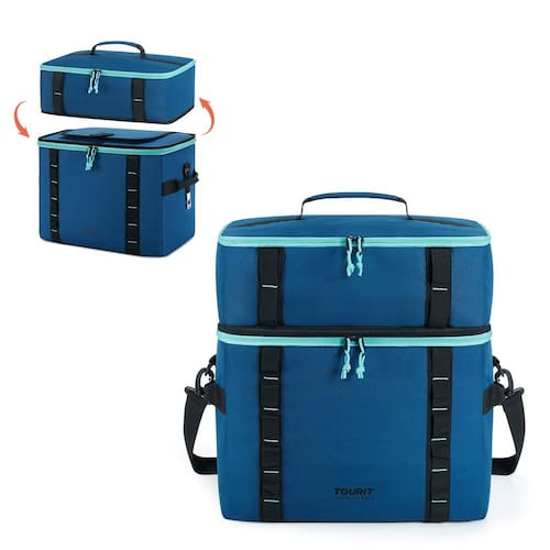 TOURIT Só provará com ação que os produtos TOURIT apenas melhoram sua experiência ao ar livre. - Grande capacidade: as bolsas térmicas podem conter um volume de 47 litros. Você pode levar 69 latas (355 ml) da sua bebida favorita - Tempo de resfriamento de longo prazo: o compartimento principal usa materiais isolantes de alta densidade e materiais à prova d'água para trabalhar juntos para garantir que os alimentos ou bebidas permaneçam frescos por até 12 horas! Mantém seus alimentos e bebidas frescos por mais tempo - 100% à prova de vazamento: o forro interno é feito de material impermeável de alta frequência PEVA, que é de alta densidade e à prova d'água. Fácil de limpar. O exterior é feito de tecido Oxford de alta densidade e tecido xadrez, que é firme e resistente ao desgaste, não é fácil de rasgar - Vários transportes: projetado com uma alça acolchoada e uma alça de ombro removível, oferece várias formas de transporte, livre para escolher para carregar à mão ou com uma alça de ombro. Equipado com um bolso frontal e dois bolsos de malha para facilitar o armazenamento dos itens. Com um abridor de garrafas, permitindo que você desfrute de uma bebida fresca em qualquer lugar - Bolsa térmica dobrável e versátil: uma corda elástica na parte superior da capa, que pode colocar toalhas e outras necessidades diárias ou você pode usá-la para dobrar a bolsa facilmente para economizar espaço quando não estiver em uso. Grande capacidade com isolamento por mais tempo, e também pode ser enchida com vários lanches e almoços. É uma companhia ideal para você viajar ou ir trabalhar