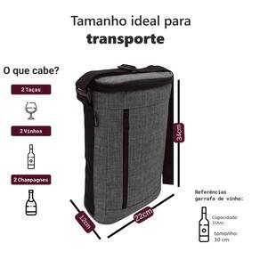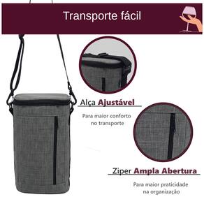 Bolsa Térmica Porta Vinho 2 Garrafas Oxford Cinza Impermeável para Viagem Leve suas bebidas favoritas com estilo, praticidade e na temperatura ideal!