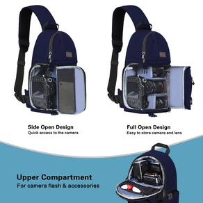 - A camada de espuma macia envolta pode proteger bem sua câmera e acessórios de choques acidentais e arranhões. Separado em 2 partes: a caixa de armazenamento inferior maior (dimensão interna: 25,7 x 20 x 11 cm) é separada com inserções modulares removíveis para caber em várias lentes e unidades de flash; partes superiores para acessórios necessários. O suporte de tripé é apresentado em um lado. 1 bolso oculto com zíper antirroubo na parte de trás para seus itens preciosos.