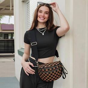 - ?Interior espaçoso para todos os seus itens essenciais?Medindo 11,85,58 cm com uma alça de ombro ajustável de 53 a 114 cm, esta bolsa tiracolo quadriculada oferece amplo espaço. É perfeita para passeios diários, compras e viagens curtas, permitindo que você saia com as mãos livres enquanto carrega tudo o que você precisa.