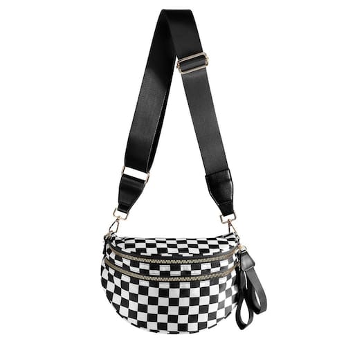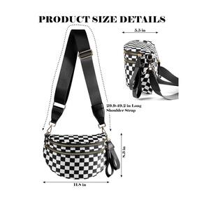 Bolsa transversal quadriculada preta e branca para mulheres, bolsa quadriculada espaçosa, pochete com alça de ombro - ?Cruz elegante?Esta elegante bolsa tiracolo apresenta um padrão quadriculado, adicionando um toque de sofisticação a qualquer roupa e adiciona um estilo extraordinário ao seu uso diário. Faz você se destacar da multidão. - ?Material de tecido durável?Feita com materiais de alta qualidade, resistentes ao desgaste e práticos, esta bolsa é feita para suportar o uso diário e fácil de limpar, e mantém a aparência como nova - ?Organizado e grande capacidade? Tamanho da bolsa tiracolo xadrez: 32,5 x 14,2 x 22,4 cm. Esta bolsa de cinto tem três bolsos na parte externa e um bolso grande e um bolso com zíper no interior. Fácil de acessar e anti-roubo. Esta pochete pode guardar todos os seus itens essenciais, como batom, óculos de sol, guarda-chuva, celular, bateria recarregável, etc. - ?Praticidade encontra a moda?Padrão de moda xadrez 2025 e design de bolsa espaçoso, prático e ousado. Esta pochete se ajustará aos seus diferentes estilos de roupas. Ajuste diferentes alças de ombro para se transformar facilmente em bolsa de ombro, bolsa transversal, bolsa de mão, bolsa de peito. - ?Alças de ombro amigáveis?As alças ajustáveis medem até 138 cm de comprimento, tornando-as não apenas adequadas para tamanhos grandes, mas também para pessoas altas! As alças são totalmente removíveis, facilitando a substituição pelo seu próprio tipo de alça! Alças largas para que você não se canse por um longo tempo enquanto estiver fazendo compras, viajando ou caminhando.