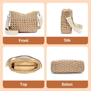Bolsa colorida feita à mão Resort Beachy média cruzada com alça superior para mulheres - [Bolsa transversal de palha com 2 alças multicoloridas removíveis]: o design com alça de guitarra larga de alça de ombro colorida de substituição e alça de corrente torna os bolsos retrô distintos. Pode ser usada em bolsas de mão, embreagem, bolsas para axilas, bolsas de ombro ou bolsas transversais de acordo com a necessidade real. - [Tecido à mão e material durável natural]: a bolsa de palha moderna com fecho de zíper é feita de materiais de tecelagem de palha natural, que não são apenas ecológicos, mas também modernos e casuais. Padrão clássico e fecho de zíper superior que ajudam a manter seus itens contidos. Personalize seu estilo encantador de verão. Existem 6 cores (bege, café, laranja, rosa, verde, roxo) para você escolher, que podem combinar com suas diferentes roupas diárias. - [Tamanho bonito e capacidade espaçosa]: 25 cm x 7,9 cm x 17,8 cm (C x L x A), alça de lona ajustável: 39,9 a 69,8 cm, altura da alça Chian: 30 cm, perfeita para guardar celulares, carteira, óculos de sol, cosméticos, guarda-chuva dobrável e outros itens pessoais. - [Escolha perfeita para férias na praia no mar]: a bolsa crossover de crochê de designer não é apenas a melhor escolha para férias à beira-mar, mas também uma nova e única que atrairá muita atenção na rua. Adequado para muitas ocasiões, como praia de verão, resorts, viagens, viagens, piquenique, compras ou uso casual diário. - [Presente surpreendente]: a bolsa lateral boho de palha é o presente perfeito para namorada, esposa e mãe em qualquer ocasião como Natal, Ano Novo, Dia dos Namorados, aniversário e aniversários. É adequada para uma variedade de estilos de roupas.