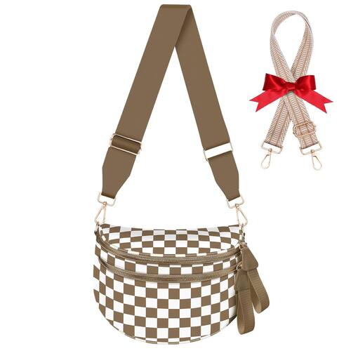 X-KIDS Bolsa transversal quadriculada para mulheres, bolsa grande de nylon quadriculada, pochete com alça extra, Xadrez marrom